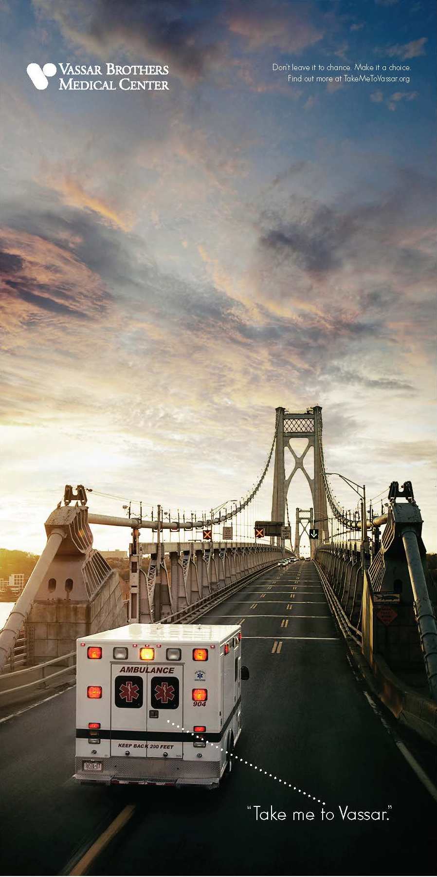A campaign that just highlighted Vassar’s quality of care and medical resources wasn’t enough. We needed to give patients a rallying cry– a way to empower them to make the hospital choice that was best for them. “Take me to Vassar” was that rallying cry. Simple, bold, and relatable. “Take me to Vassar” has gone from TV spots, ads, and outdoor billboards to language being used by patients.